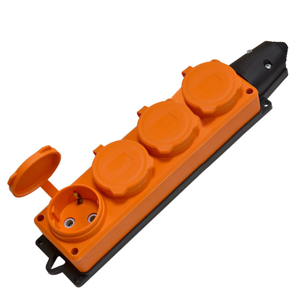 Колодка электрическая 4 розетки UNIVersal 16 А 250 В UNIVersal 3,5 кВт с заглушками компакт оранжевая (3035)