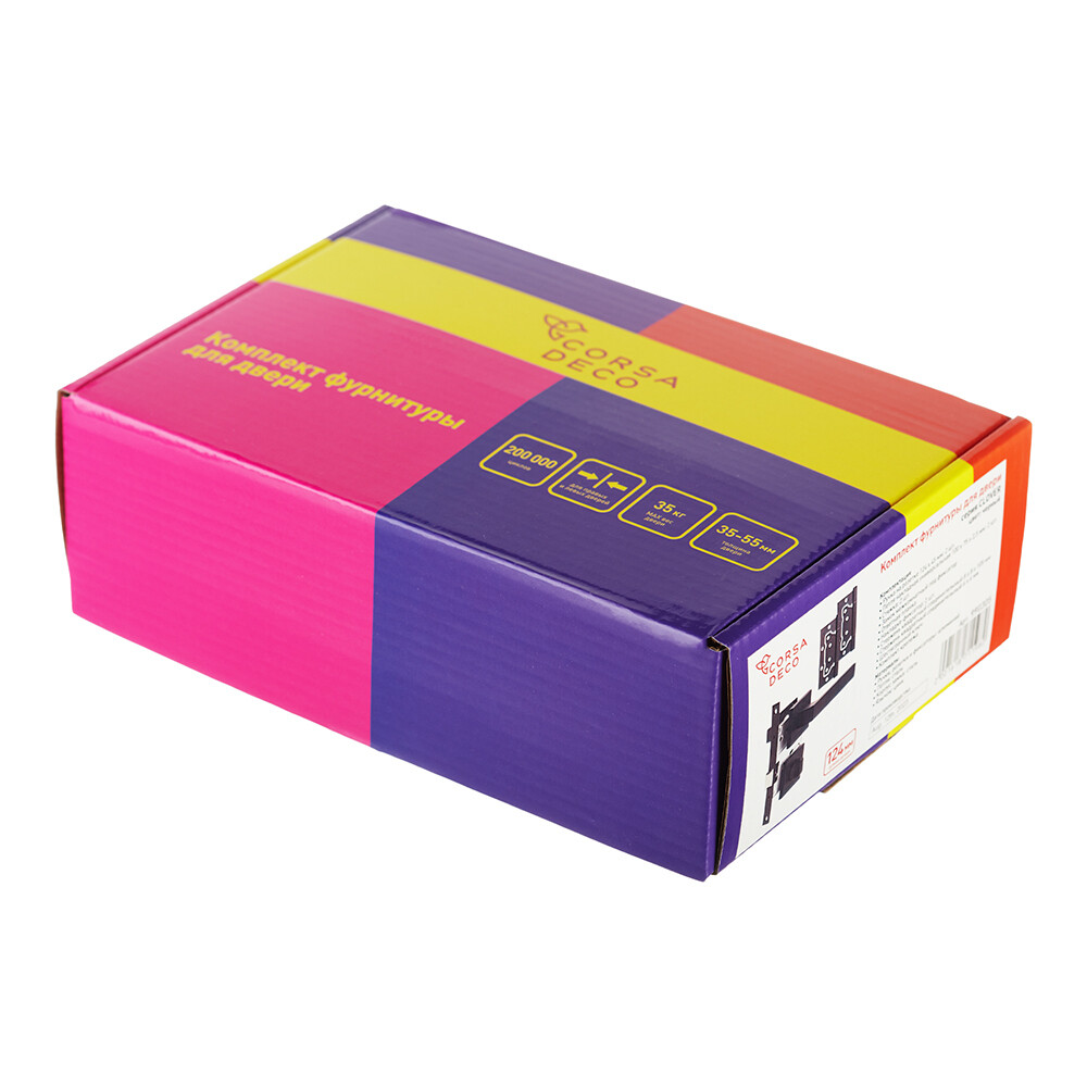Комплект фурнитуры для двери Corsa Deco Clover с замком, петлями и фиксатором (черный).