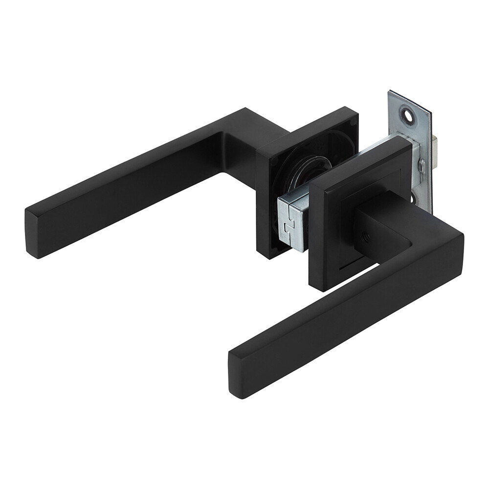 Комплект фурнитуры для двери Corsa Deco Clover с защелкой и петлями квадратная розетка черный (990307)