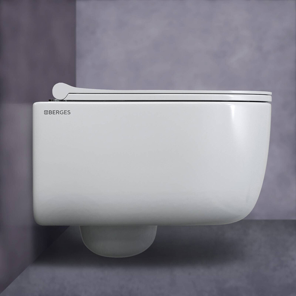 • Унитаз безободковый подвесной BERGES, сиденье дюропласт, микролифт, …