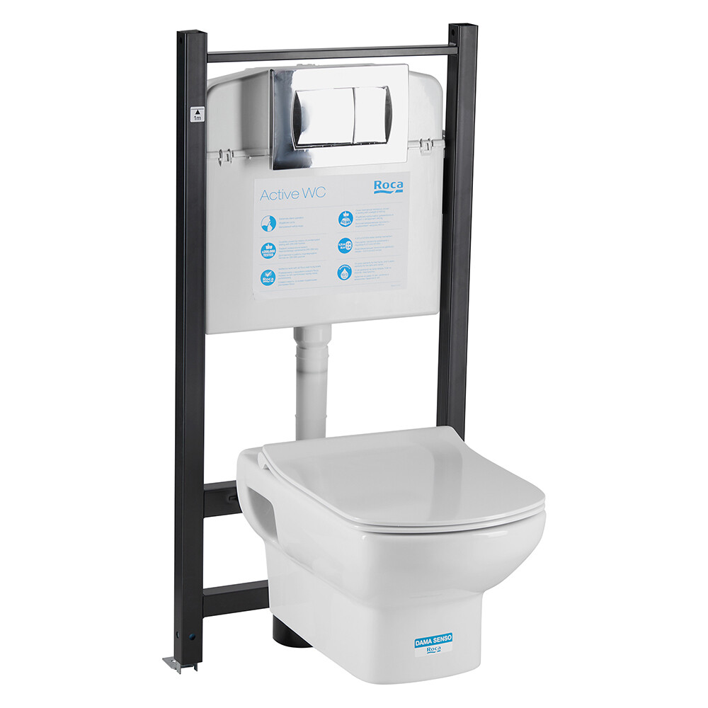 Комплект инсталляции Roca Dama с унитазом Senso Slim с кнопкой хром и сиденьем дюропласт микролифт быстросъем (893104090)