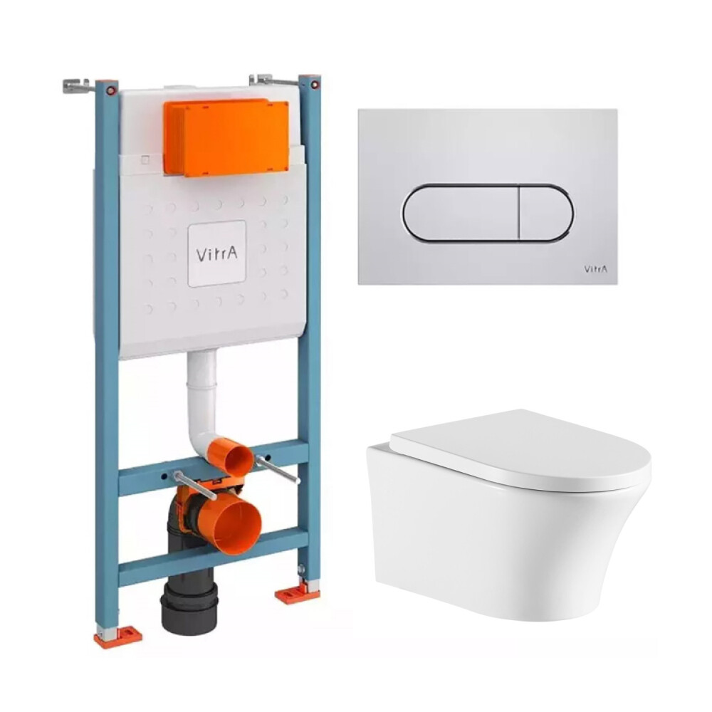 Комплект инсталляции Vitra Core с унитазом Corsa Deco FX Rimless с кнопкой хром и сиденьем дюропласт микролифт быстросъем