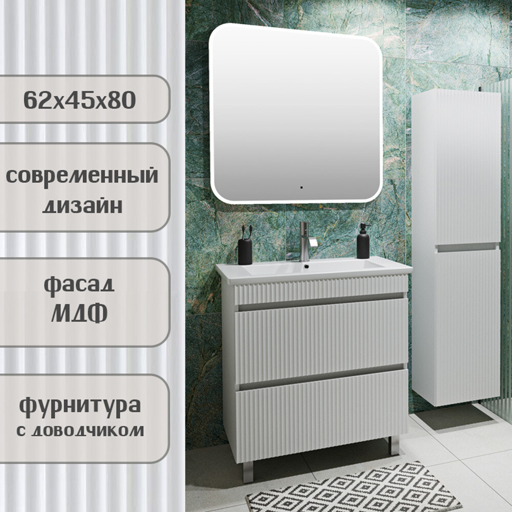 Тумба с раковиной Runo Модена 660 мм напольная белая (00-00001452) – это изысканность и утонченная роскошь в интерьере.