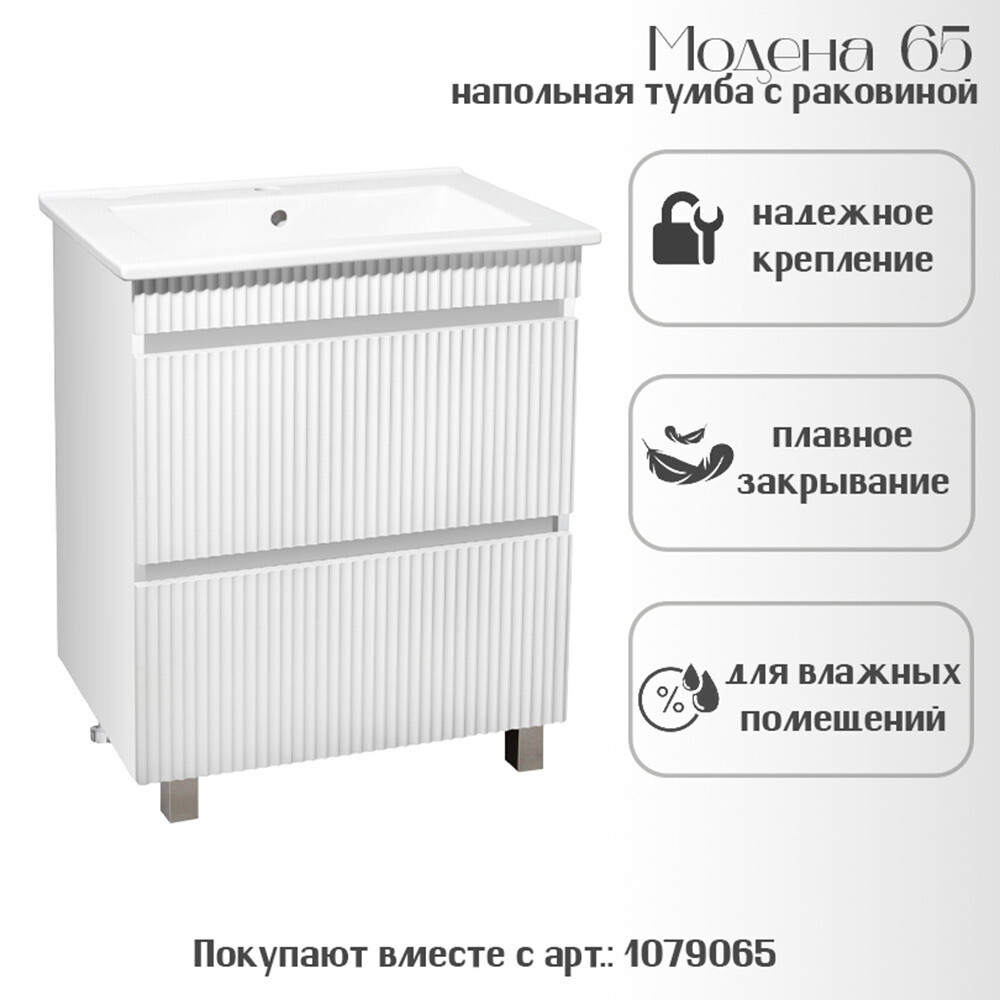 Комплект тумба с раковиной Runo Модена 65 см напольная белая (00-00001452)
