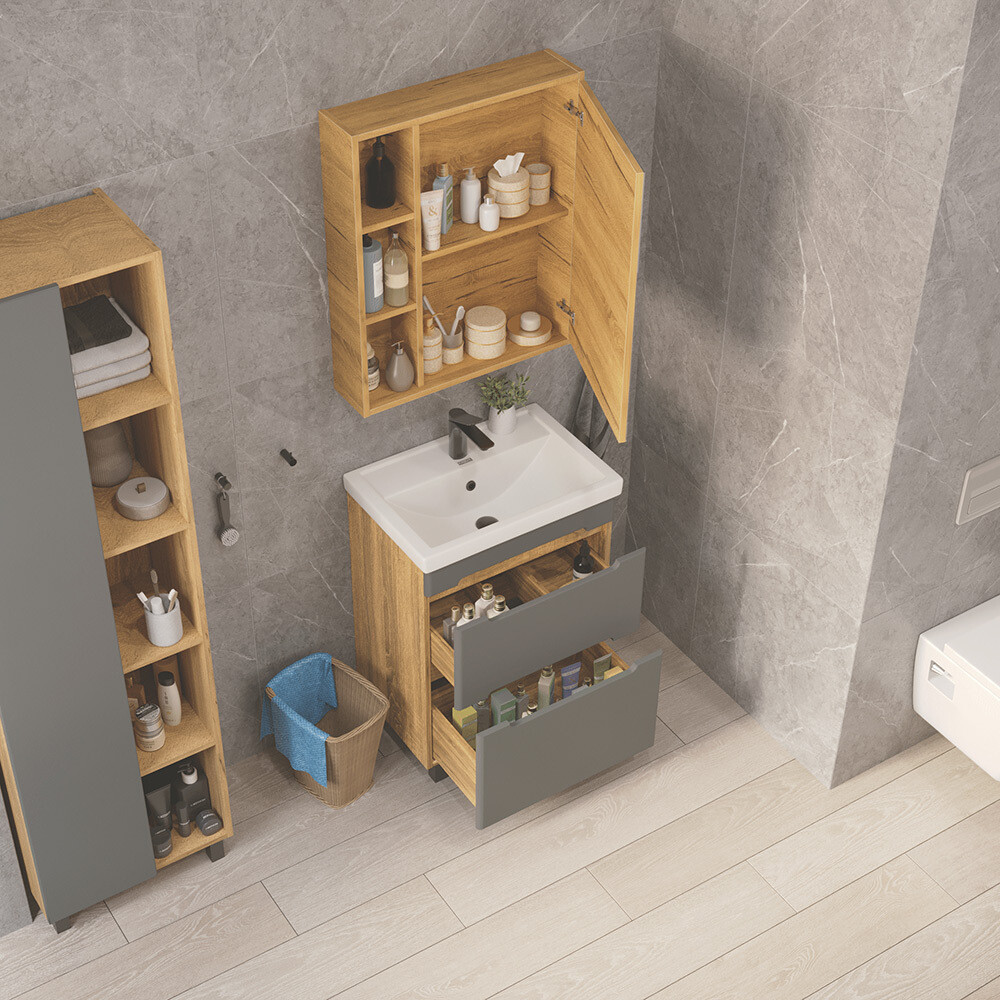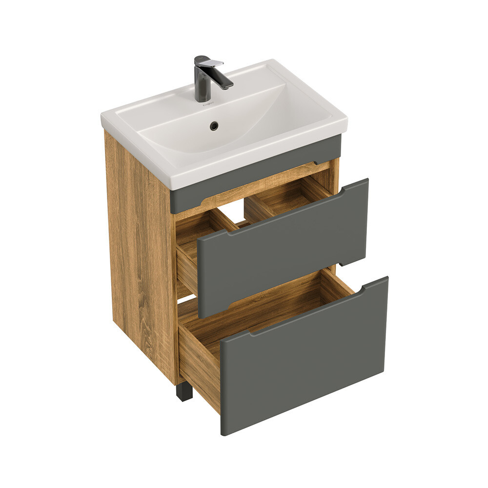 Комплект тумба с раковиной Sanstar Diva 60 см напольная дуб вотан/графит софт (458.1-1.4.1.КФОС)