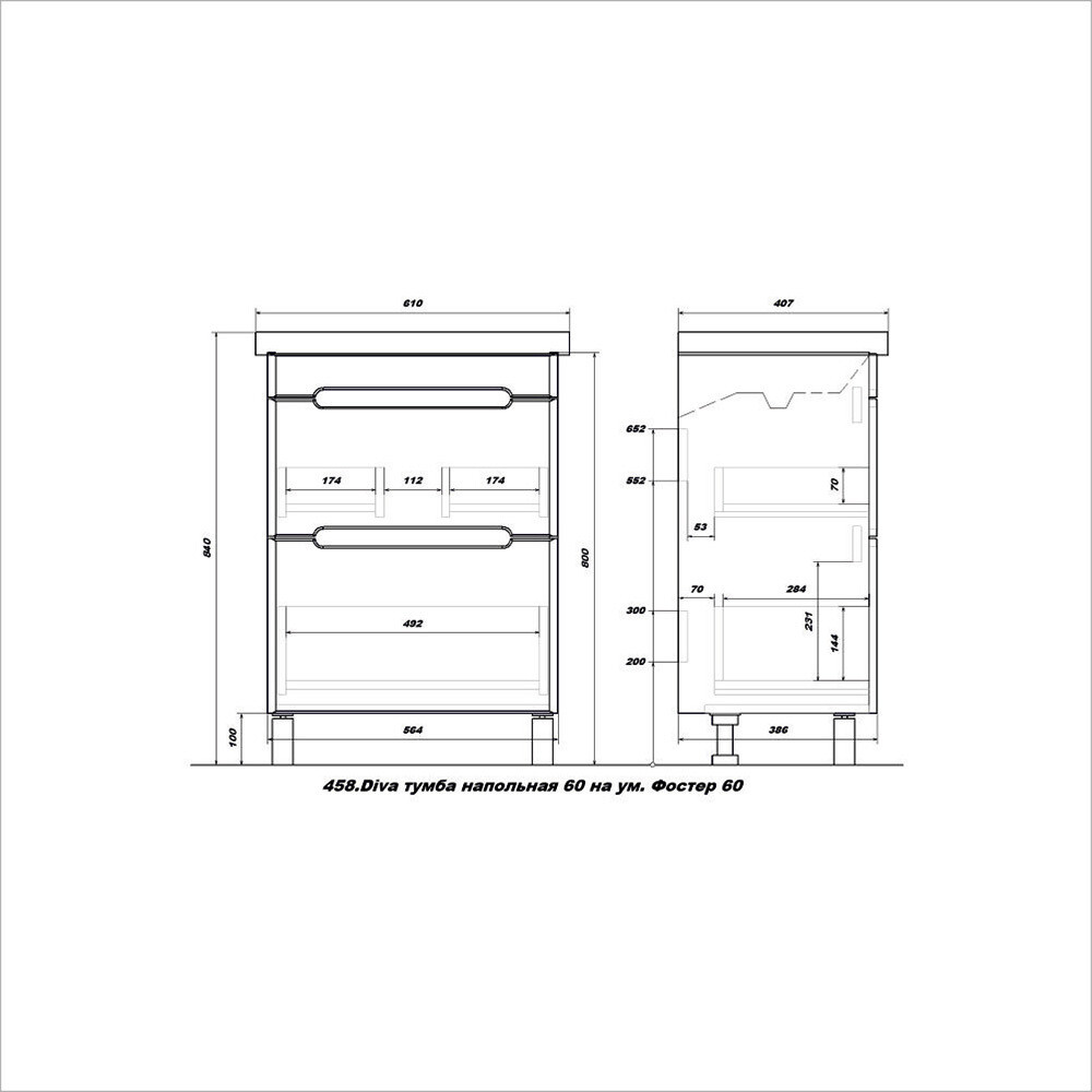 Тумба напольная Diva 60 комплектуется раковиной Фостер 600. Выполнена в современном стиле. Корпус изготовлен из ламинированного ДСП – цвет Дуб Вотан.