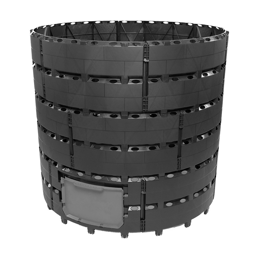 Привлекательный внешний дизайн, способный украсить любой участок. Крепкая, стойкая конструкция. Модульная конструкция позволяет менять высоту и объем. Компостер прост в сборке и прочно крепится к земле пластиковыми стержнями. Распашные створки позволяют вынуть готовый компост с любой стороны.