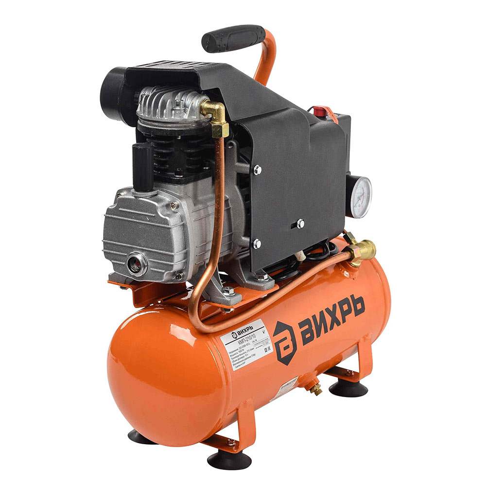 Представляет собой небольшое устройство, при помощи которого можно работать с пневматическим инструментом. Благодаря прямому приводу уменьшается уровень шума. Конструкция устойчива за счет четырех опор под ресивером. Емкость достаточна, чтобы в течение некоторого времени с момента выключения двигателя можно было подавать сжатый воздух. У компрессора «Вихрь» КМП-210/10 74/3/1 тип соединения — рапид (EURO).
