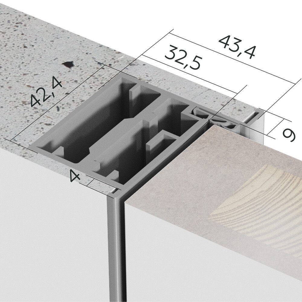 Универсальный короб Invisible используется для создания промежуточной конструкции — коробки, к которой впоследствии крепятся скрытые двери. Данная коробка подходит для монтажа дверей как прямого, так и обратного открывания. Имеет жесткую алюминиевую конструкцию без соснового бруса. Поставляется комплектом с крепежом и фурнитурой.