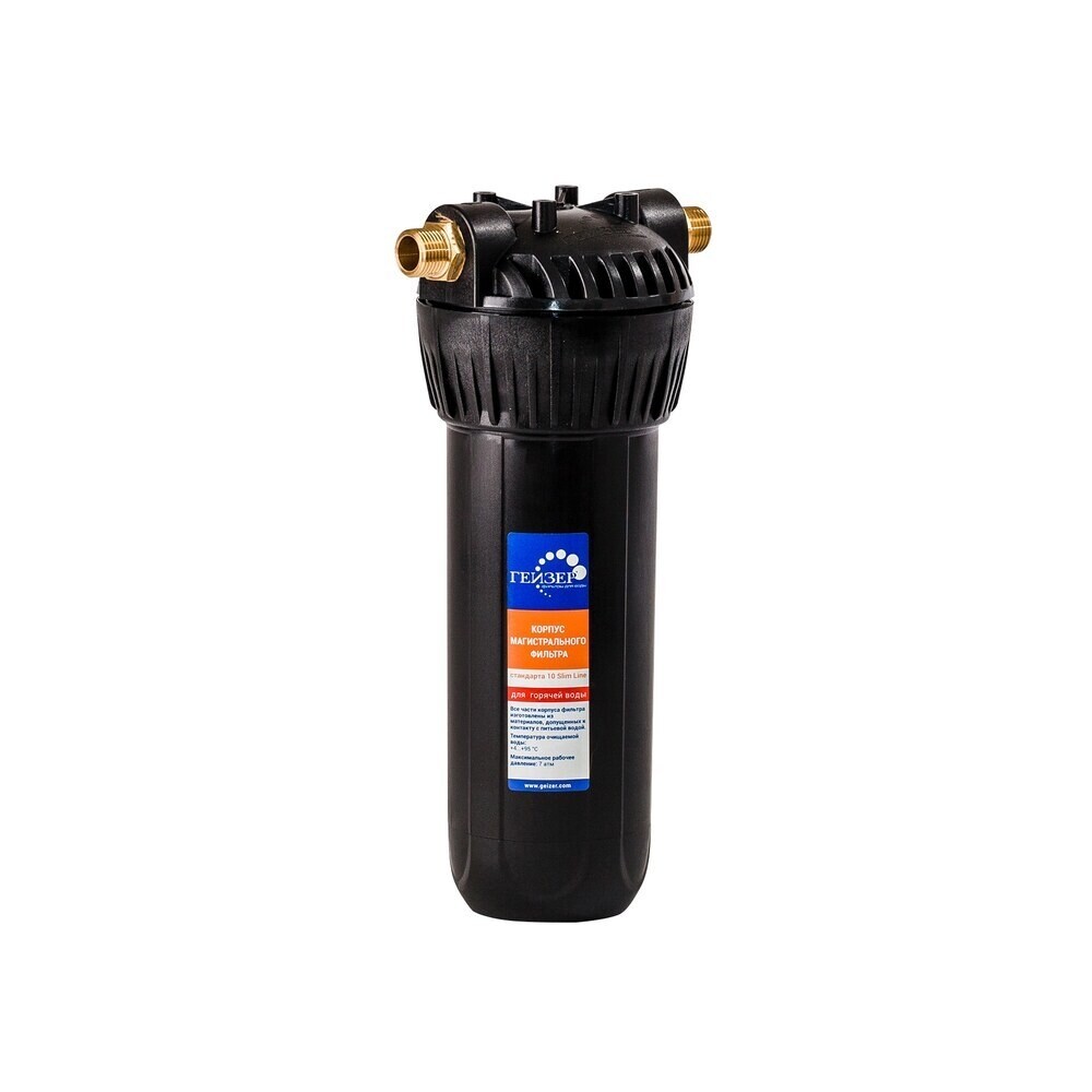 Корпус фильтра Гейзер для холодной и горячей воды пластик 10SL 1/2 НР(ш) х 1/2 НР(ш) черный