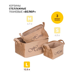 Корзина для хранения Велюр 340х220х160 мм бежевая