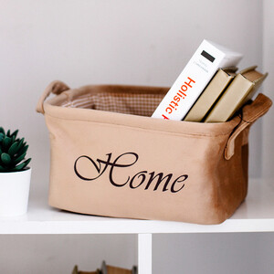 Стильная велюровая корзинка от Handy Home в тёплом бежевом цвете гармонично дополнит интерьер и поможет навести порядок на полках стеллажа или шкафа.