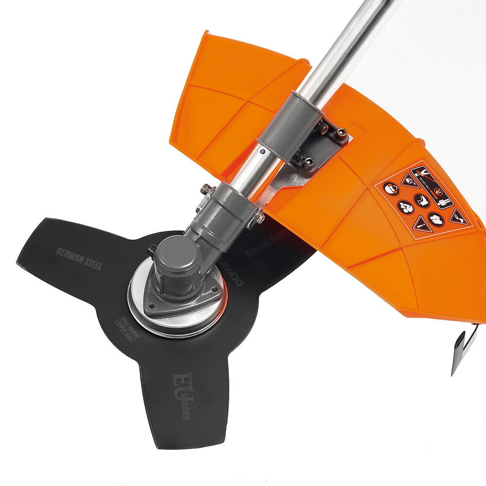В комплект триммера DABC 1800Е также входит удобная ременная оснастка, триммерная головка, а также пильный диск для плотной растительности и скашивания молодого кустарника.