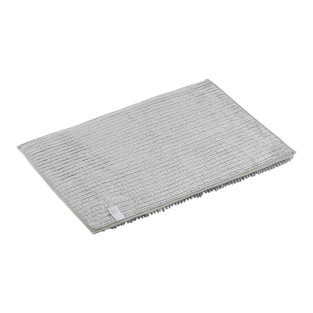 Коврик для ванной комнаты в нежном серебристом исполнении подойдет для многих современных интерьеров. Он изготовлен из атласной микрофибры – это мягкий и приятный на ощупь материал, который быстро высыхает, а пушистые валики разной толщины дают легкий массажный эффект. Благодаря этим свойствам, коврик подходит для использования в помещениях с повышенной влажностью. Антискользящее покрытие позволяет безопасно использовать коврик на глянцевой плитке и полах с подогревом, а также его легко стирать в стиральной машине.