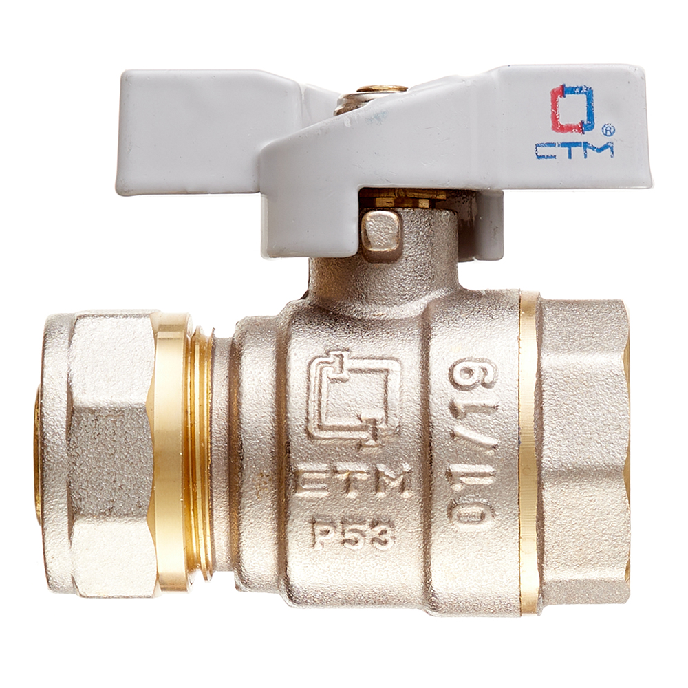 Кран шаровой латунный СТМ 20 обж(ц) х 3/4 ВР(г) для металлопластиковых труб бабочка прямой