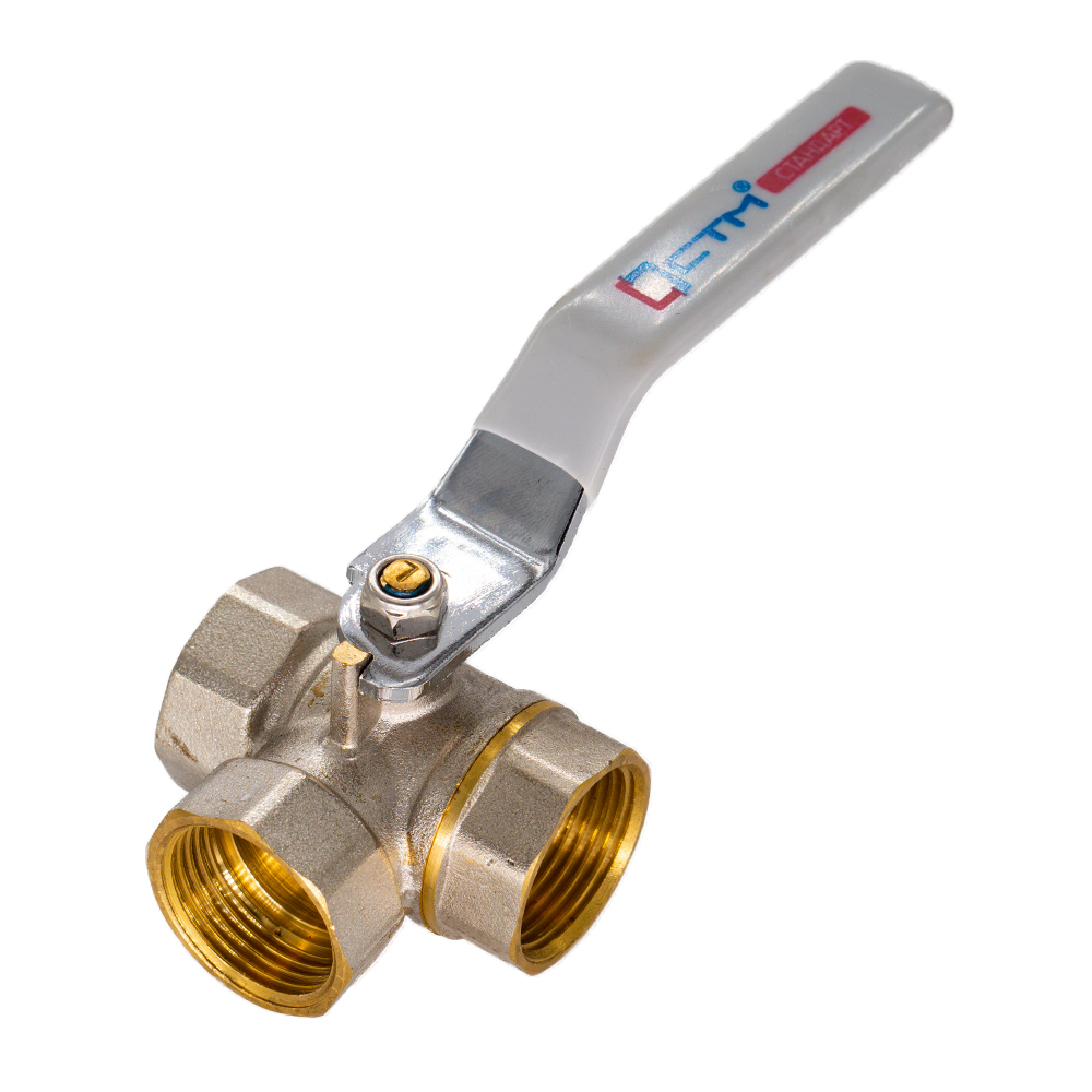 Кран шаровой для воды 1/2″ трехходовой, тип L рычаг CTM Стандарт применяется для изменения потока на трубопроводах систем питьевого, хозяйственно-бытового и промышленного назначения, систем холодного, горячего водоснабжения и отопления, сжатого воздуха и жидких углеводородах, а также трубопроводах, транспортирующих среды, не агрессивные к материалам крана для обеспечения разбивки трубопровода на отсекаемые ремонтные участки. Особенности конструкции, технологии изготовления, применяемых материалов обеспечивают долголетнюю работу шарового крана СТМ Стандарт при эксплуатации в условиях отечественных инженерных систем. Шаровой кран СТМ Стандарт является полнопроходным и ремонтопригодным. Корпус и шток крана изготовлен из высококачественной горячепрессованной латуни с никелированным покрытием. Шаровой затвор с L-образным каналом изготовлен из высококачественной горячепрессованной латуни, отполирован и покрыт хромом. Герметичность затвора крана соответствует наиболее высоком классу по ГОСТу 9544-2005 – А. Наличие тефлоновых седельных колец и сальниковой прокладки позволяет использовать шаровой кран СТМ Стандарт в отопительных системах с рабочей температурой до 150 С. Оптимальная длина резьбы обеспечивает надежное соединение. Кран оснащен стальной ручкой-рычагом. Техническое обслуживание крана в течение всего срока эксплуатации не требуется. Не требуется применения специального сгонного ключа при монтаже и демонтаже. Монтаж и демонтаж крана производится обычными трубными ключами.