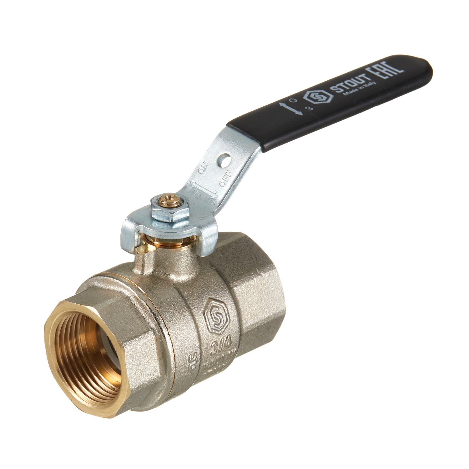 Кран шаровой латунный Stout SVB 3/4 ВР(г) х 3/4 ВР(г) полнопроходной ручка прямой (SVB-0001-200020)