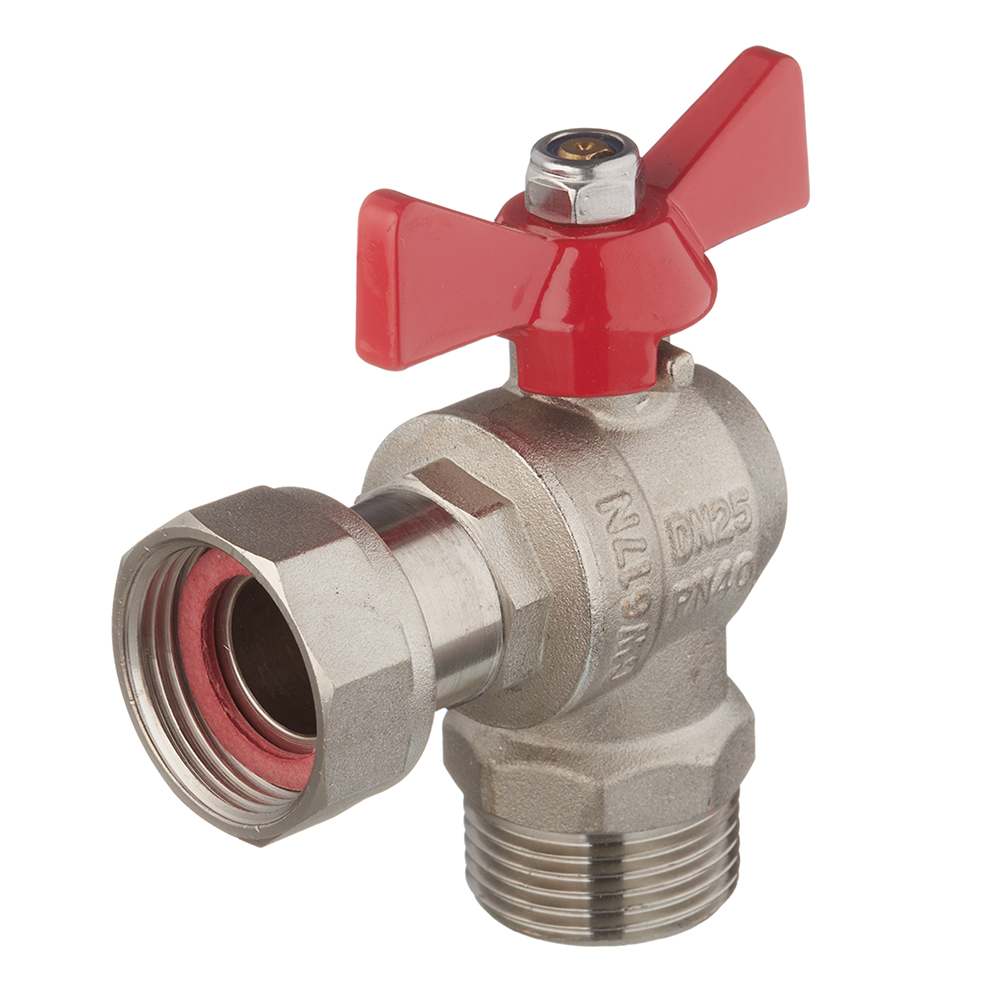Кран шаровой латунный Valtec Base 1 ВР(г) х 1 НР(ш) бабочка с накидной гайкой угловой (VT.267.N.0606)