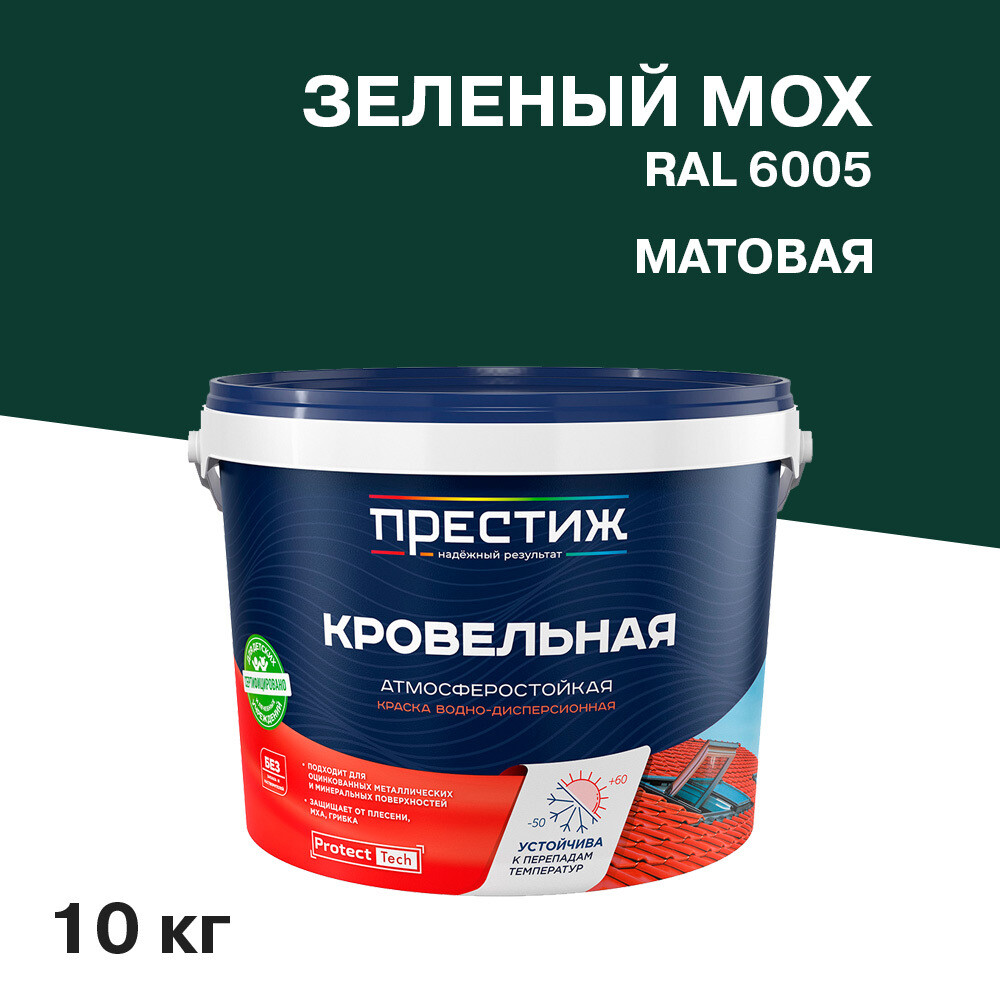 Краска кровельная Престиж зеленый мох матовая RAL 6005 10 кг