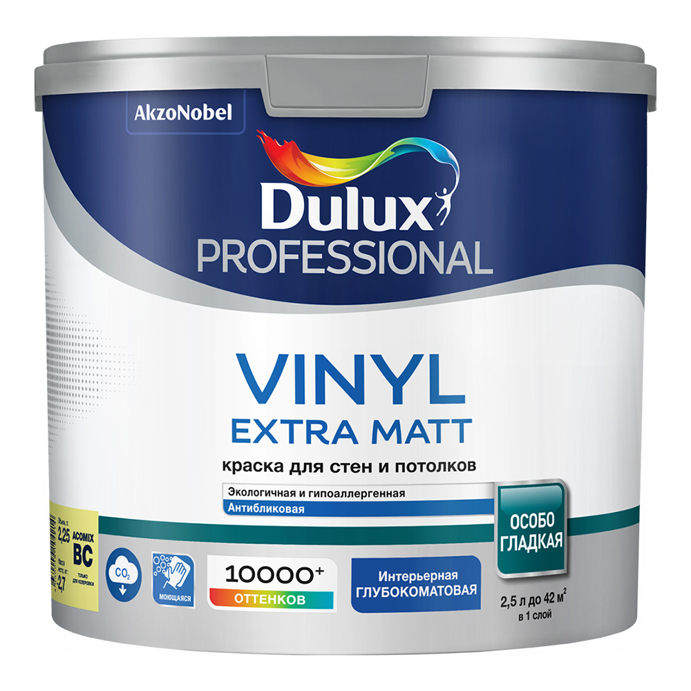 Краска моющаяся Dulux/Luxium Vinyl Extra Matt база BC бесцветная 2,25 л