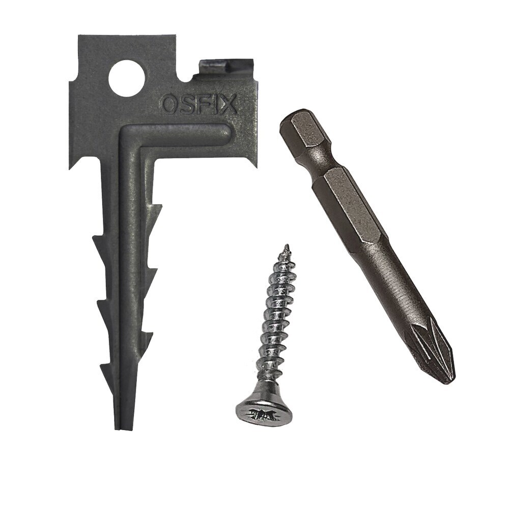 Предназначен для монтажа террасной и палубной доски из натуральной древесины на лаги из натуральной древесины. Матовое термодиффузионное цинковое покрытие обеспечивает отсутствие бликов. Форма и комбинация шипов оптимизированы для крепления древесины. Автоматически формирует зазор в 6 мм. Подходит для досок любой ширины толщиной от 18 мм. Набор включает в себя полный комплект для установки террасной доски на площади до 10 м2 (в зависимости от ширины доски и расстояния между лагами).