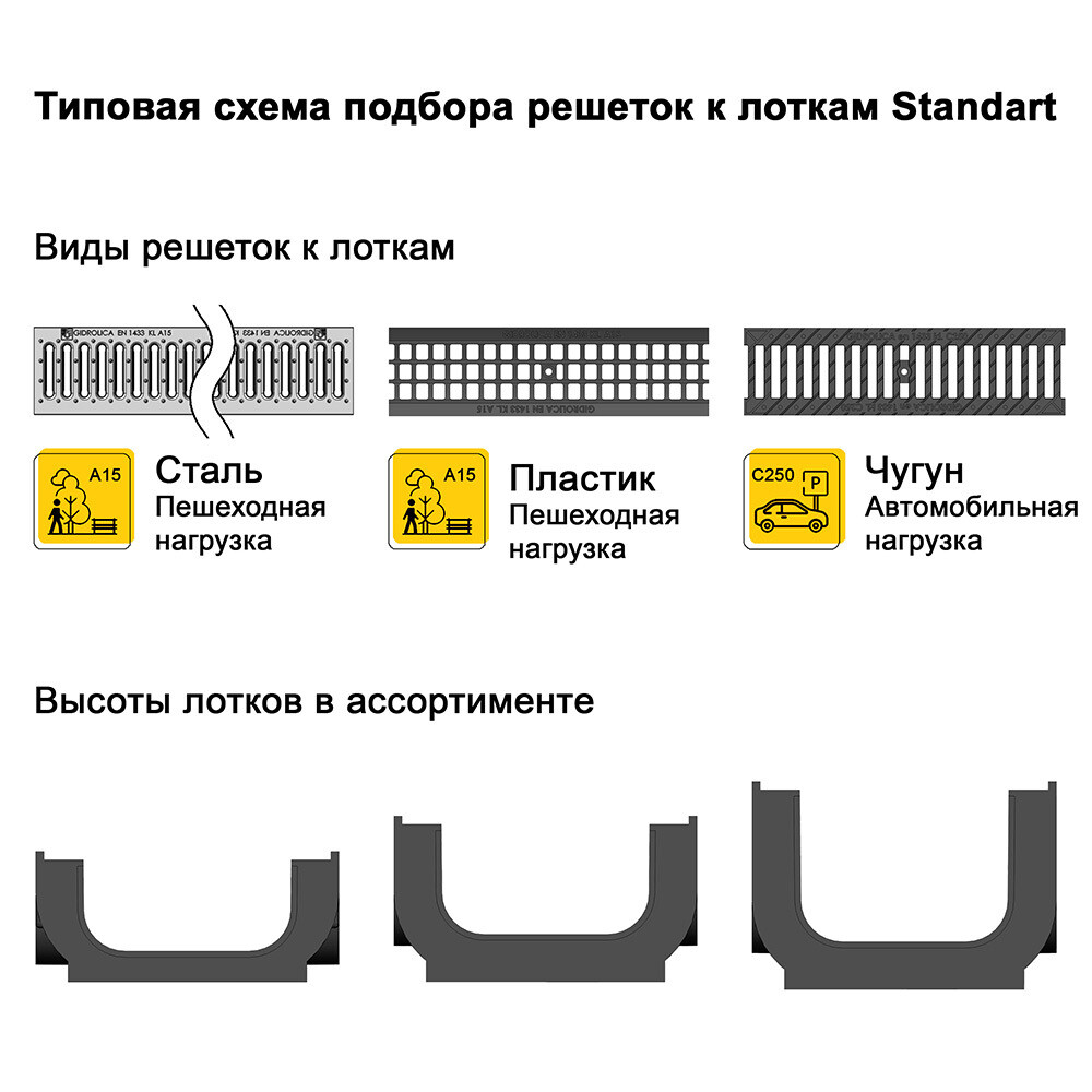 Крепеж к лотку водоотводному пластиковому Гидролика предназначен для фиксации решетки чугунной (арт. 106862) и решетки пластиковой (арт. 154622) к лоткам пластиковым (арт. 154628, 104542,104643, 104644 и пескоуловителю арт.139623). Производитель рекомендует обязательно фиксировать чугунные решетки на лотках, для обеспечения безопасного движения, как легковых автомобилей, так и пешеходов, через линию лотков. Зафиксированная крепежом решетка к лотку защищена от физических воздействий – намеренного или случайного сдвига, а также от хищения этих решеток. Крепеж особенно важен, если используются пластиковые решетки, которые обладают малым весом и значительно легче смещаются, нежели более тяжелые решетки из металла.