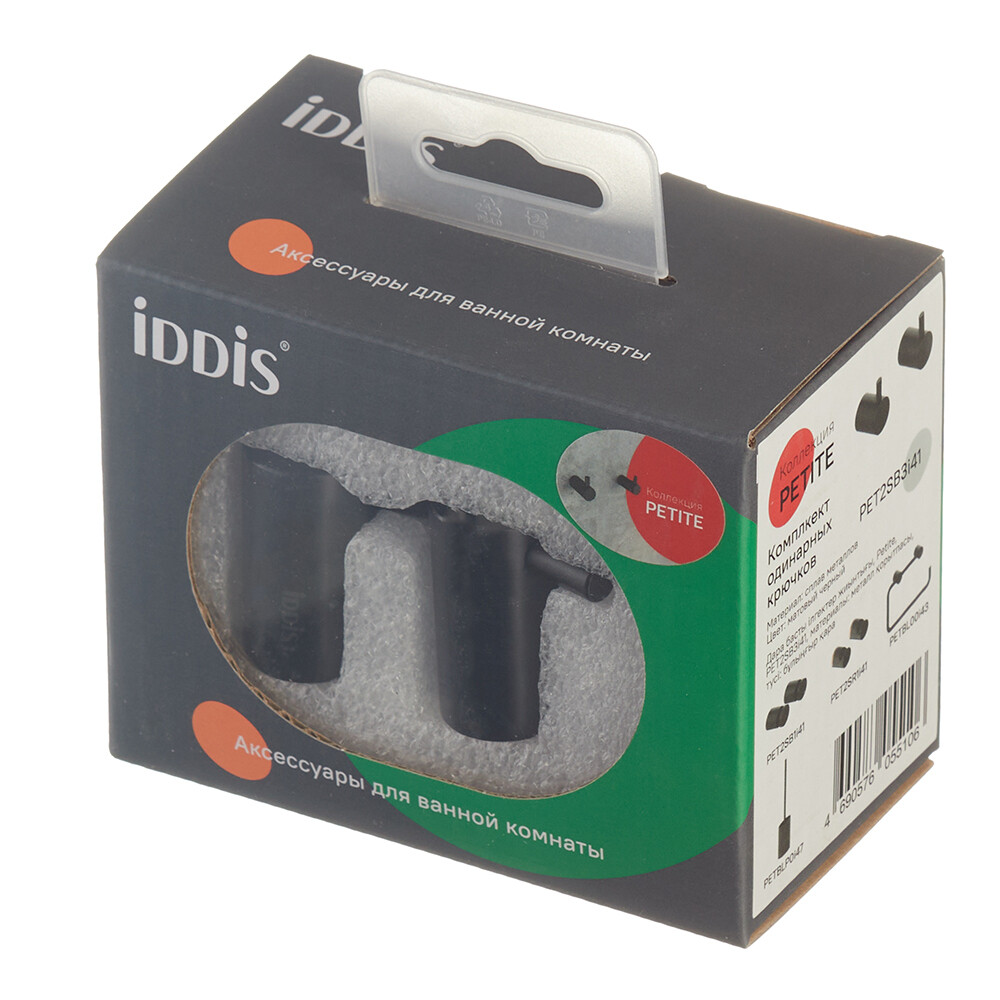 Крючок для ванной Iddis Petite одинарный на шуруп металл черный (2 шт.) (PET2SB3i41)