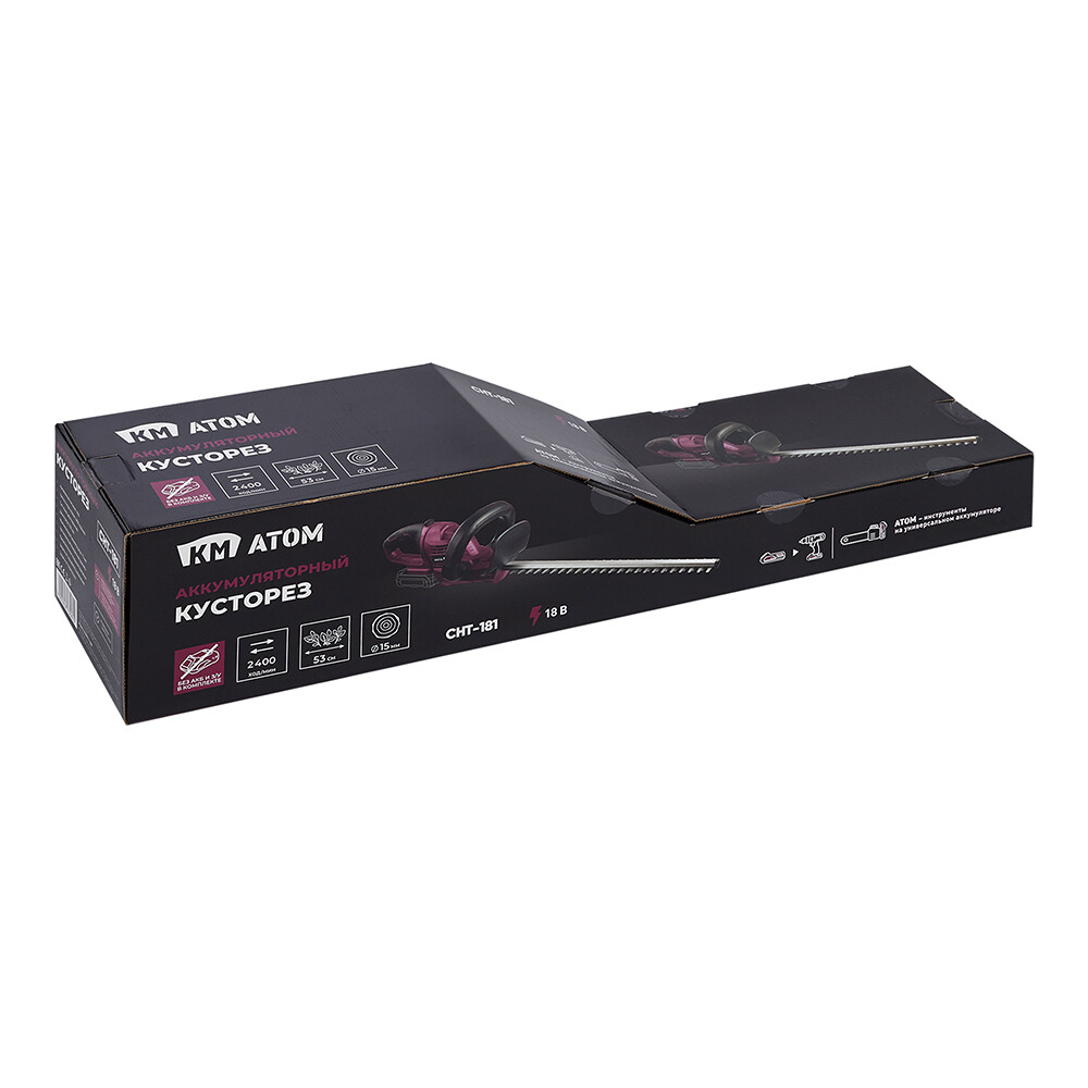 Все инструменты и садовая техника данной серии работают от универсальных аккумуляторов КМ АТОМ.