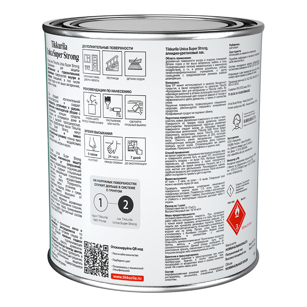 Лак алкидно-уретановый яхтный Tikkurila/Tikkivala Unica Super Strong основа EP бесцветный 0,9 л полуматовый