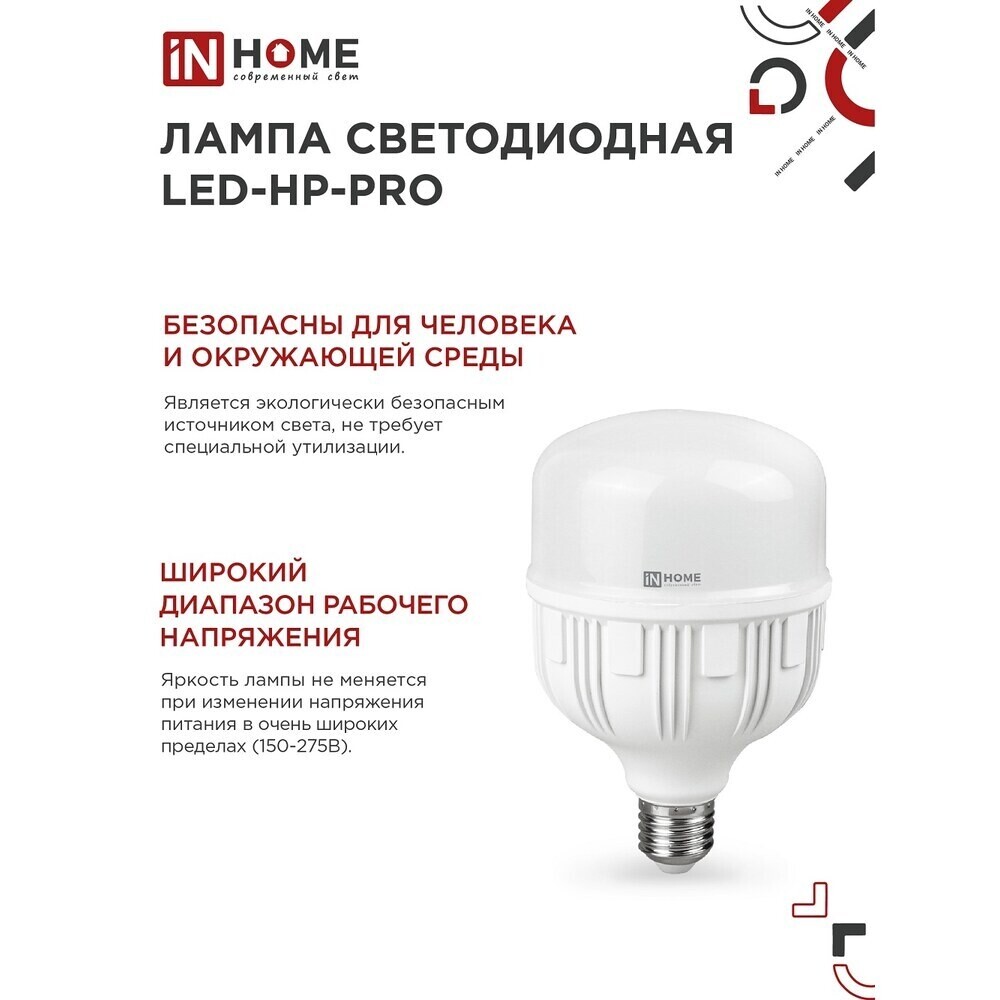 Лампа светодиодная IN HOME Е27/Е40 6500К 80 Вт 7600 Лм 230 В цилиндр T120 матовая