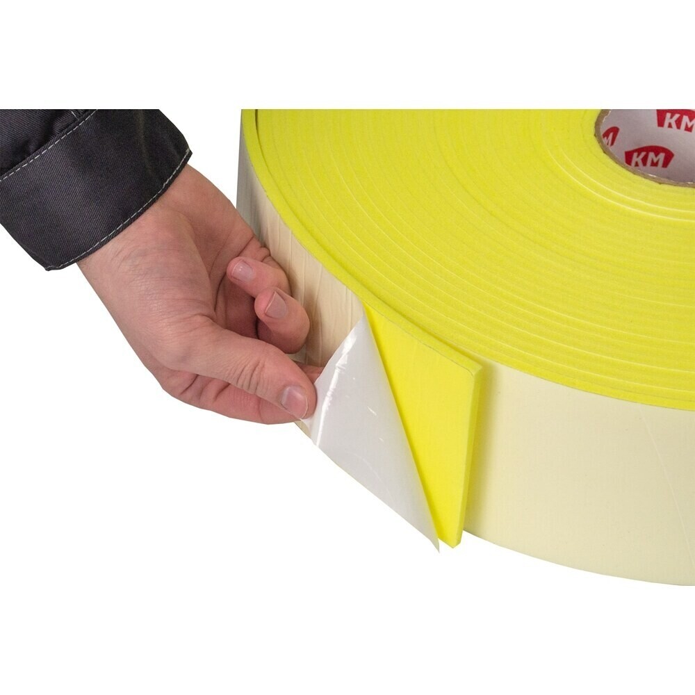 Самоклеящаяся демпферная кромочная лента КМ 6х100 мм с полиэтиленовым фартуком предназначена для систем плавающего пола и использования в процессе монтажа стяжки. Лента укладывается по периметру помещения вплотную к стене, компенсирует увеличение объемов стяжки, препятствует появлению трещин, увеличивает звукоизоляцию помещения путем препятствия распространению звука от пола на стены.