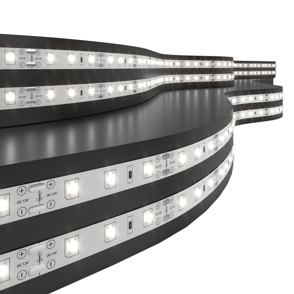Светодиодная лента 12 В предназначена для декоративного и функционального освещения интерьеров, подсветки зеркал и предметов мебели. Лента поставляется в рулоне с припаянным выводом проводов с цветовым обозначением для удобного подключения. Длина ленты составляет 5 м. Светодиодную ленту можно укоротить, отрезав нужную часть в местах для реза, а при необходимости удлинить, используя коннекторы. Гибкость ленты и надежная клеевая основа позволяют устанавливать ленту на различные поверхности. Для подключения светодиодной ленты к сети питания используются понижающие трансформаторы, преобразующие 220 В переменного тока в 12 В постоянного тока (AC 220 — DC 12V). Широкий диапазон температуры окружающей среды позволяет использовать ленту в неотапливаемых помещениях при температуре до -25°С. Срок службы светодиодов составляет 50000 часов.