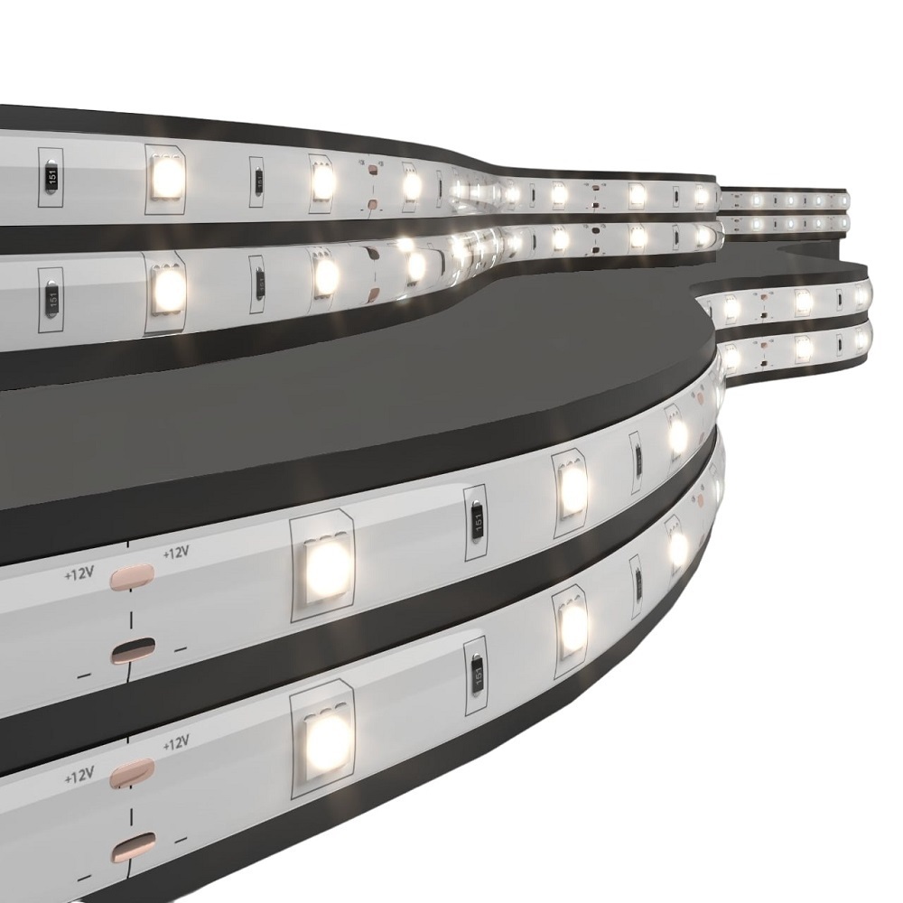 Светодиодная лента 12 В используется для декоративно-интерьерной подсветки в помещениях с повышенной влажностью (кухни, ванные комнаты), а также на улице для установки под навесом, оформления рекламных вывесок, для создания световых композиций в современных интерьерах и экстерьерах. Лента поставляется в рулоне с припаянным выводом проводов с цветовым обозначением для удобного подключения. Длина ленты составляет 5 м. Светодиодную ленту можно укоротить, отрезав нужную часть в местах для реза, а при необходимости удлинить, используя коннекторы. Гибкость ленты и надежная клеевая основа позволяют устанавливать ленту на различные поверхности. Для подключения светодиодной ленты к сети питания используются понижающие трансформаторы, преобразующие 220 В переменного тока в 12 В постоянного тока (AC 220 — DC 12V). Светодиодная лента устойчива к негативному воздействию окружающей среды и может стабильно работать в широком температурном диапазоне от -25 до +55 C. Срок службы светодиодов составляет 50000 часов.