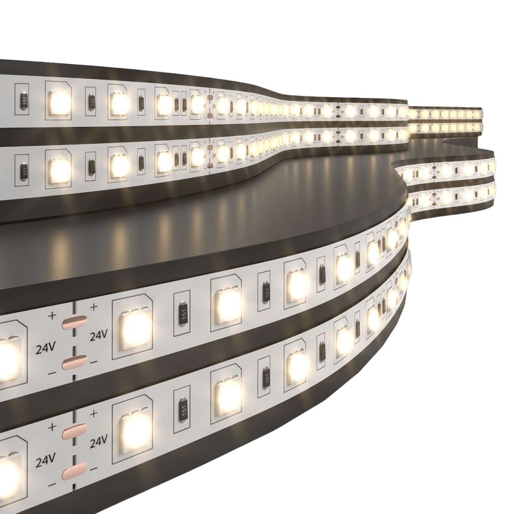 Светодиодная лента 24 В используется для создания световых композиций в современных интерьерах, а также, для декоративной подсветки зеркал и предметов мебели. Лента поставляется в рулоне с припаянным выводом проводов с цветовым обозначением для удобного подключения. Длина ленты составляет 5 м. Светодиодную ленту можно укоротить, отрезав нужную часть в местах для реза, а при необходимости удлинить, используя коннекторы. Гибкость ленты и надежная клеевая основа позволяют устанавливать ленту на различные поверхности. Для подключения светодиодной ленты к сети питания используются понижающие трансформаторы, преобразующие 220 В переменного тока в 24 В постоянного тока (AC 220 — DC 24V). Широкий диапазон температуры окружающей среды позволяет использовать ленту в неотапливаемых помещениях при температуре до -25°С. Срок службы светодиодов составляет 50000 часов.