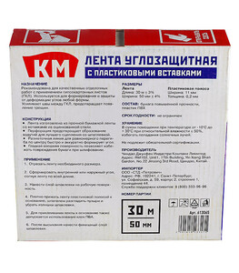 Лента углозащитная КМ с пластиковыми вставками 50 мм 30 м