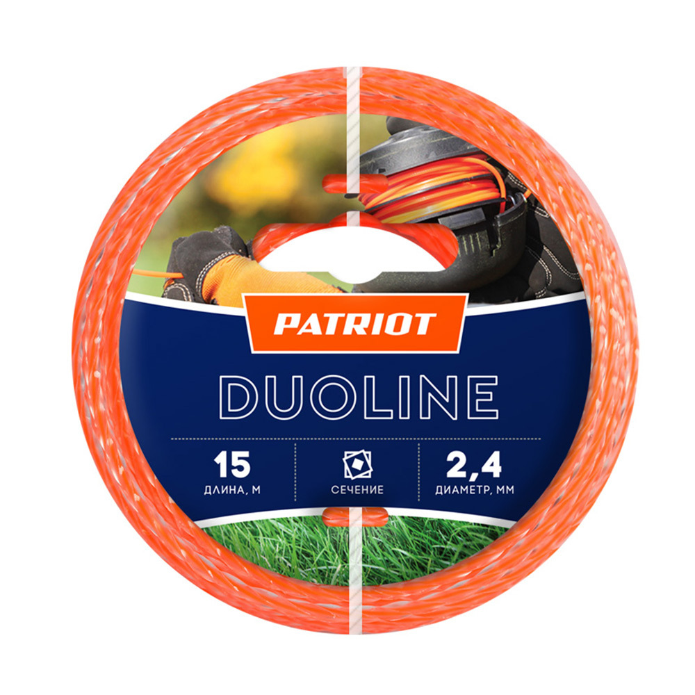 Леска для триммера Patriot Duoline витой квадрат 2,4 мм х 15 м оранжевая (805401161)