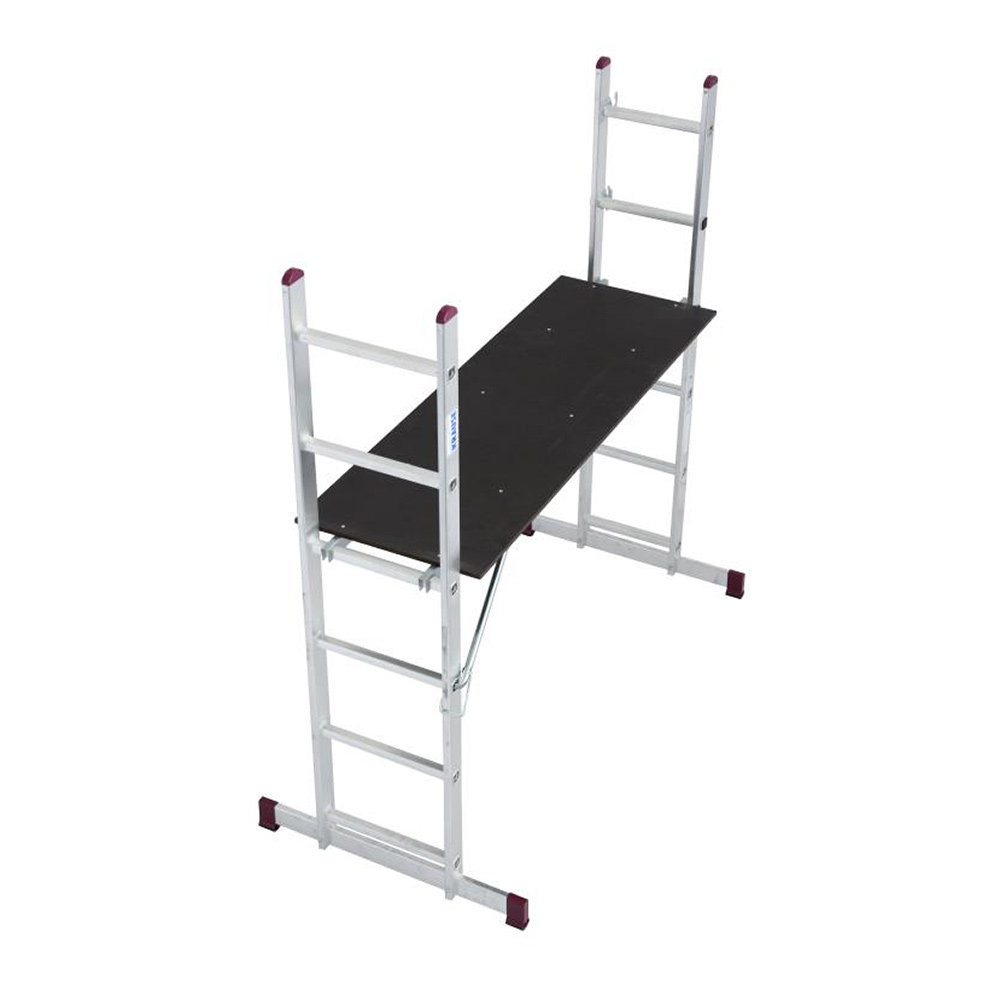 Благодаря возможности разноуровневой установки рабочей платформы лестница незаменима при работе на крыльце и на лестничной площадке.