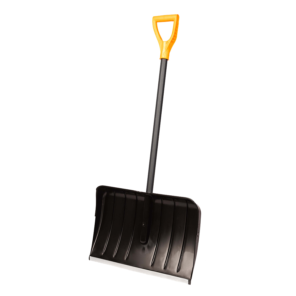 Ковш лопаты выполнены из первичного полипропилена с добавлением специальных компонентов, повышающих прочность при ударах о поверхность снега и морозах до минус 25 Градусов. На рабочей части лопат дополнительно установлена планка из оцинкованной стали толщиной 0,7 мм, защищающая пластик от сколов при ударах и изгибах.
