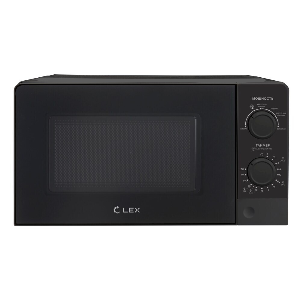Лаконичные формы, классический черный цвет, простые эксплуатация и уход — микроволновая печь Lex легко найдет свое место на любой кухне. Устройство подходит для того, чтобы разогреть блюдо или разморозить продукты. Модель с 6 уровнями мощности вполне справится и с приготовлением повседневных рецептов. Режим разморозки предусмотрен отдельно. Стеклянное вращающееся блюдо диаметром 24,5 см обеспечивает максимально равномерное приготовление блюд. Микроволновая печь оснащена интуитивно понятным механическим управлением и комфортным таймером до 30 минут. Антипригарное покрытие внутри камеры упрощает уход за устройством.