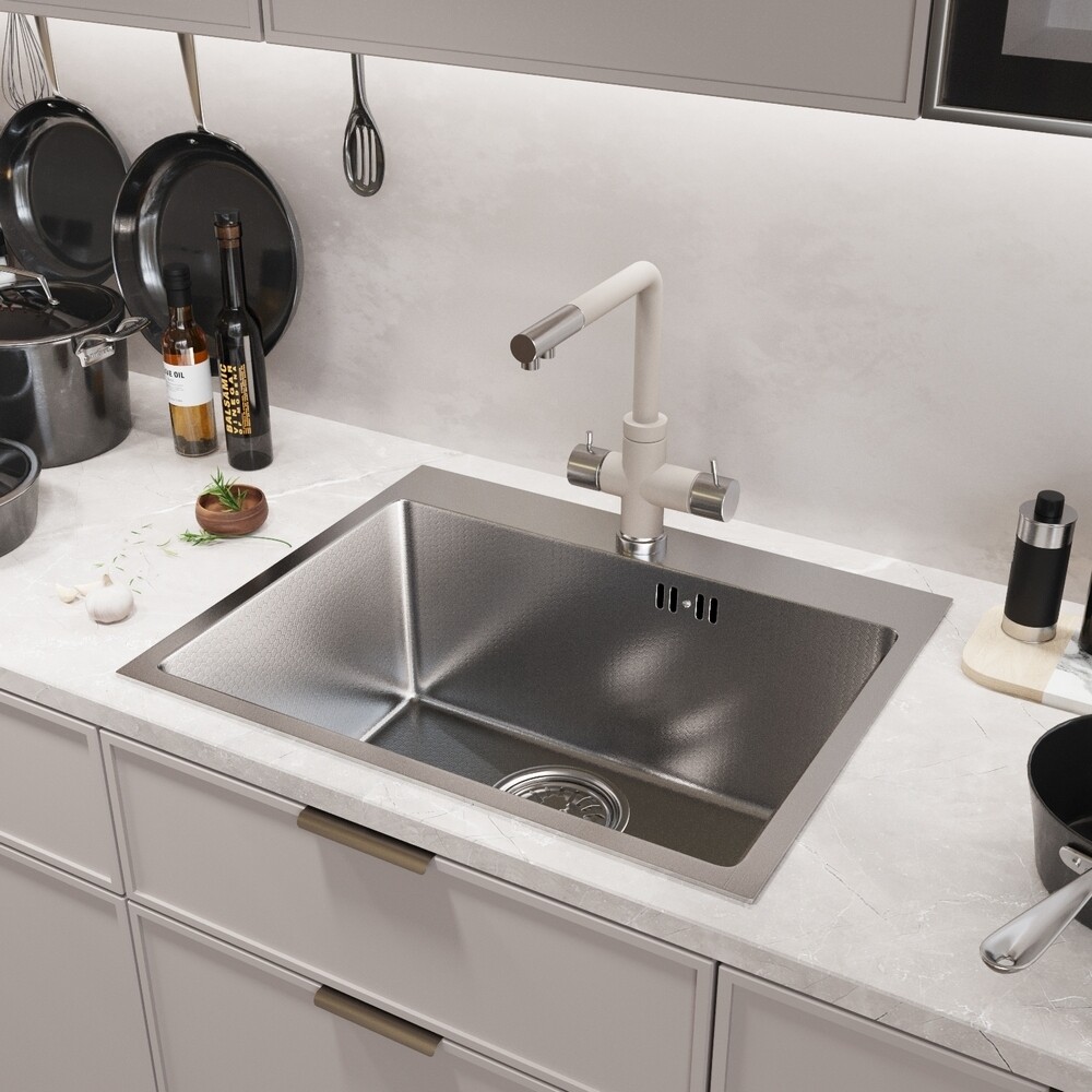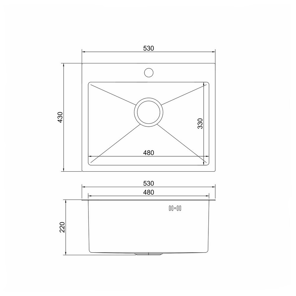 Мойка для кухни Mixline Pro 53х43х22 см врезная с сифоном сталь нано соты сатин (552934)