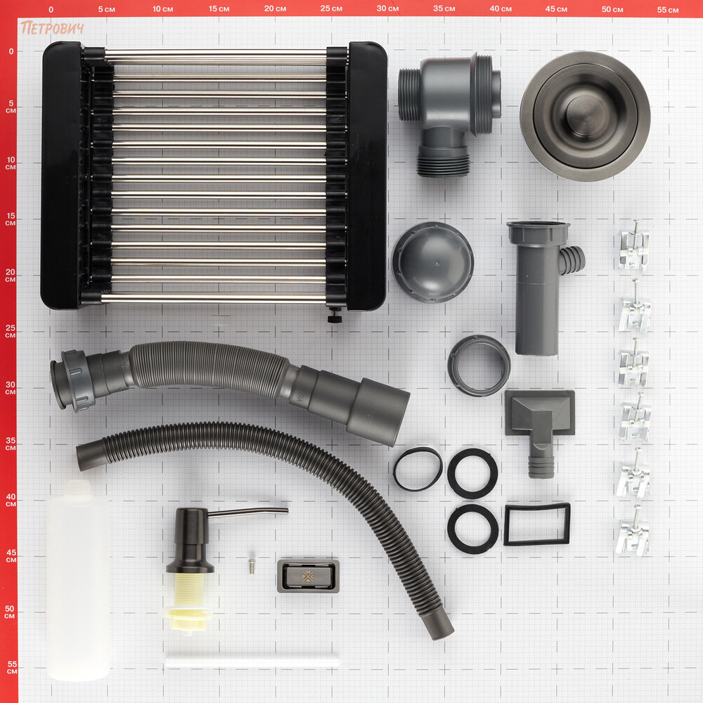 Мойка в цвете графит от бренда РМС имеет специальное покрытие PVD. Краска данной мойки интегрирована в металл, что позволяет ей быть устойчивой к образованию мелких царапин при неосторожном внешнем воздействии. По периметру мойки дополнительно нанесена шумоизоляция, которая позволяет значительно снизить звук от потока воды.