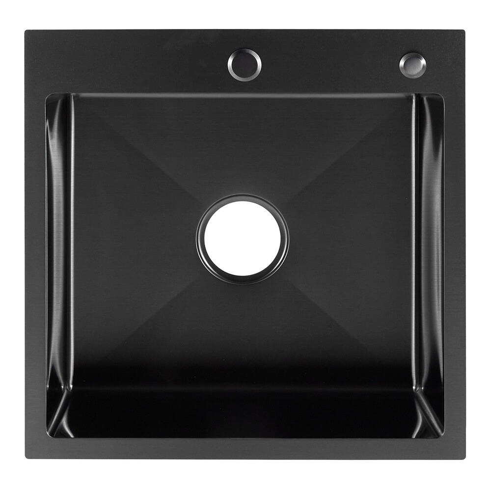 Мойка для кухни РМС 50х50х20 см врезная с коландером и дозатором сталь графит (MR-5050BL)