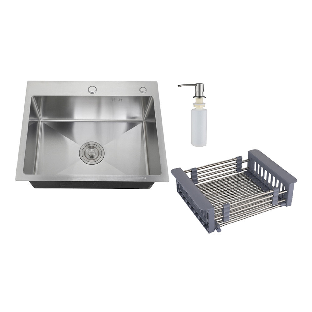 Мойка для кухни РМС 50х50х20 см врезная с коландером и дозатором сталь (MR-5050)