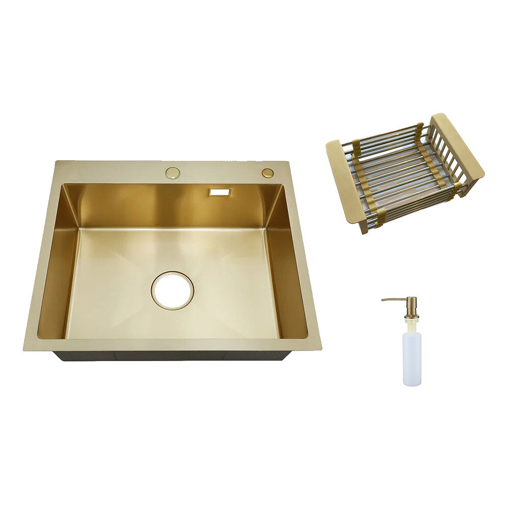 Мойка для кухни РМС 50х60х20 см врезная с коландером и дозатором сталь золото (MR-6050G)