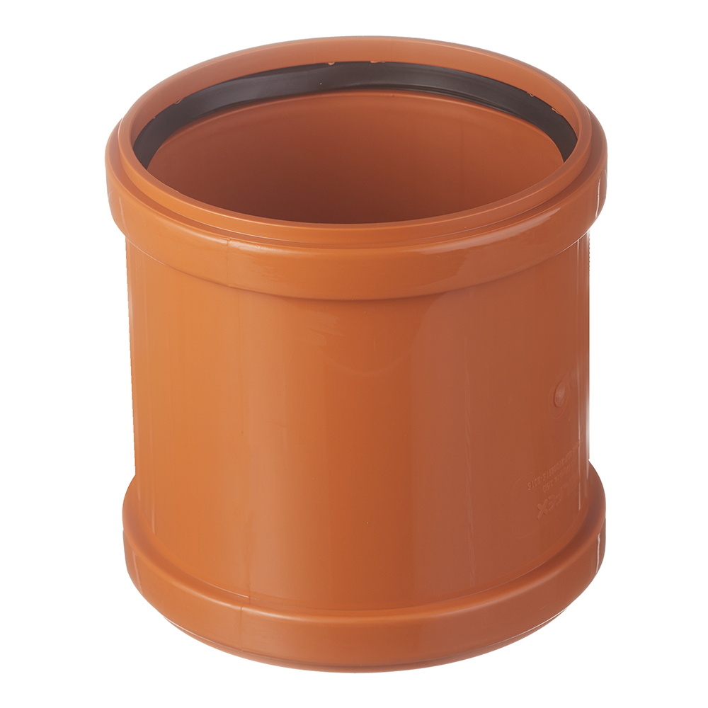 Муфта ремонтная двухраструбная используется для соединения двух труб наружной канализации с окончаниями без раструба или при соединении отремонтированного участка трубы