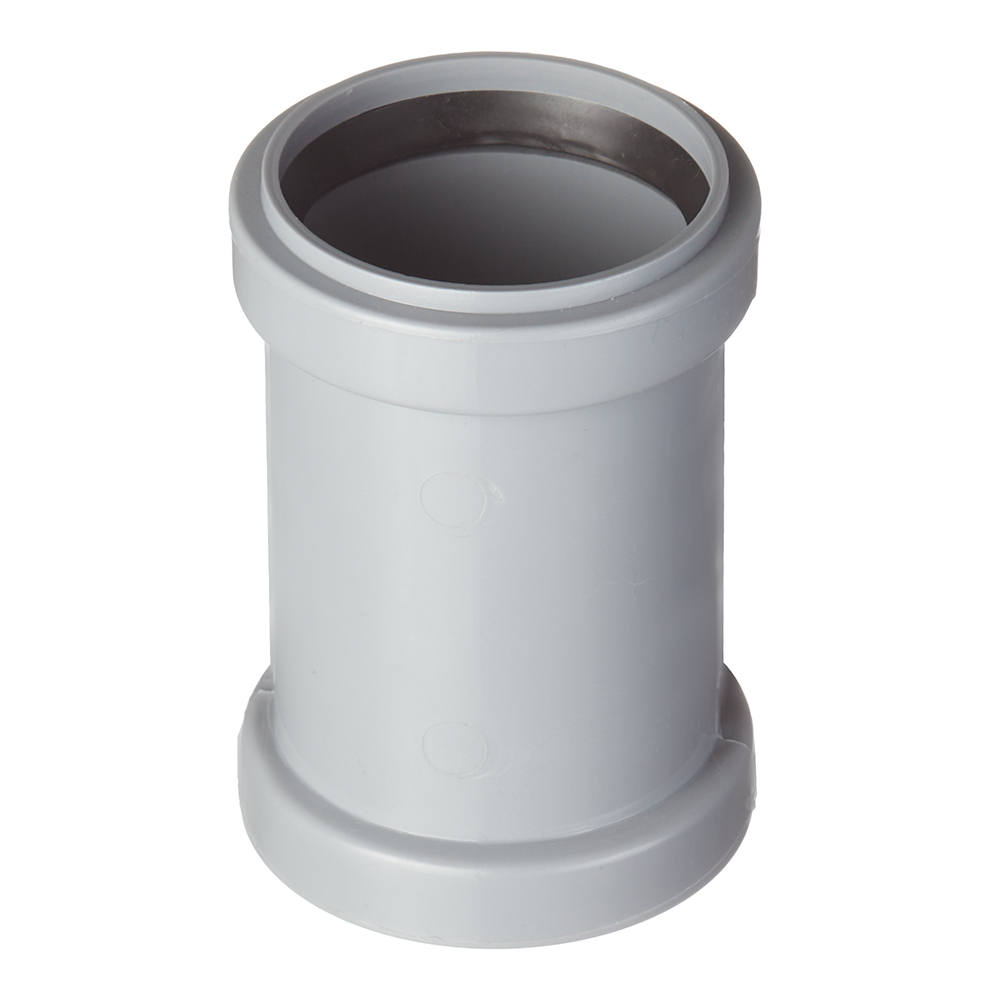 Муфта двухраструбная предназначена для соединения полипропиленовых канализационных труб системы внутренней канализации одного диаметра, не имеющих раструбов, или в случае ремонта трубопровода. Герметичность соединения обеспечивается резиновыми однолепестковыми кольцами установленными в раструб муфты.