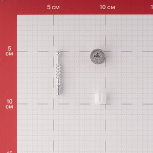 Комплектация: втулка-саморез для эксцентриковой стяжки 7х45 (4шт.), эксцентриковая стяжка для ДСП 16мм (4шт.), дюбель мебельный пластмассовый М6 (4шт.)