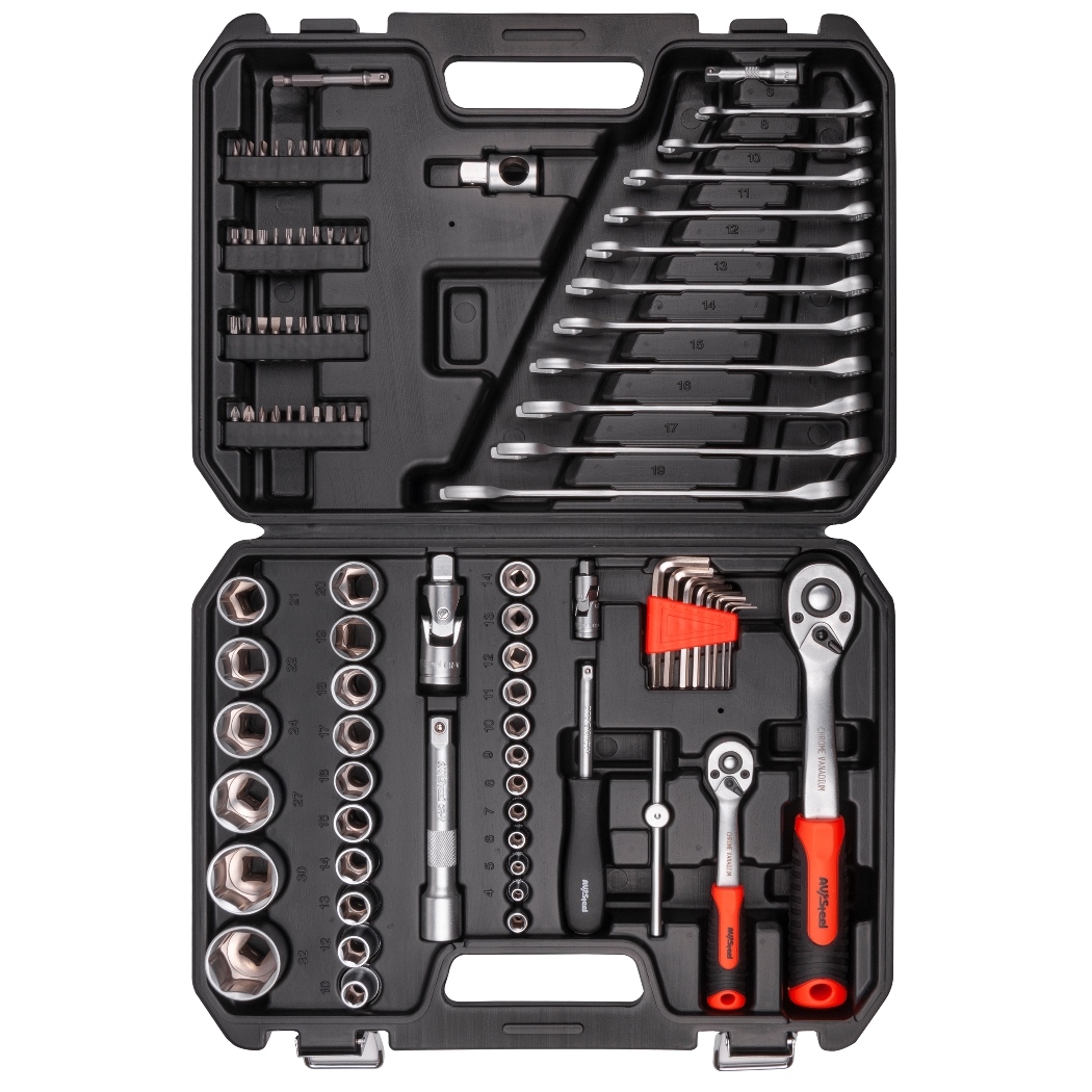 Профессиональный набор инструментов AV Steel AV-011097 разработан для эксплуатации с крепежом нестандартных типов. Это позволяет эффективно работать в мастерских и с современными автомобилями. Комплект поставляется в удобном и прочном кейсе.