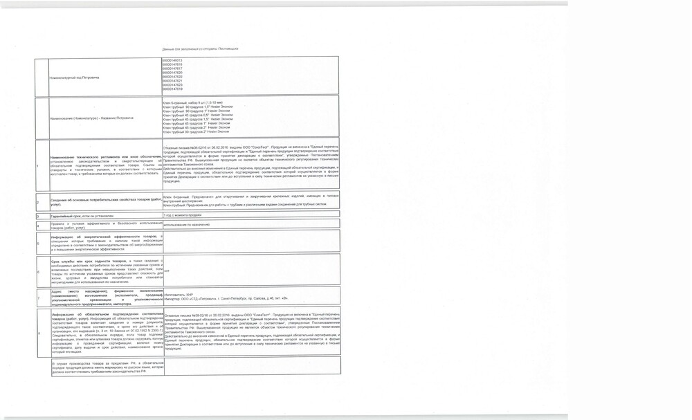 9 шестигранных ключей, пластиковый футляр.
