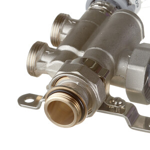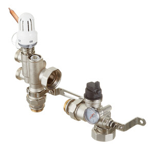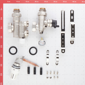 Монтируется на коллекторной группе низко-температурного контура, подключается к высокотемпературному контуру системы отопления. Присоединительный размер 1-1/2″.